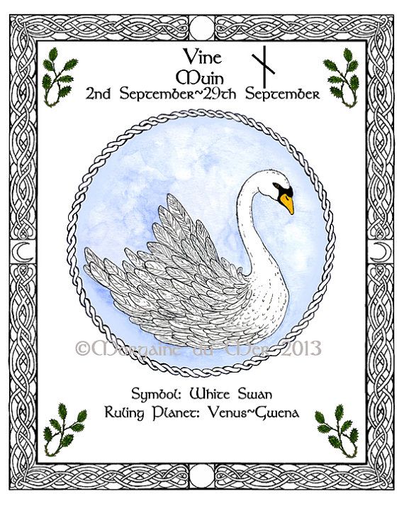 For today’s post, I will be looking at the Celtic zodiac. I have written about the Celtic zodiac before, but today I will be looking at my own Celtic zodiac signs, with a little more depth. There are two sets of Celtic zodiacs, the Celtic tree zodiac, and the Celtic animal zodiac! My Celtic zodiac signs are vine and swan. These signs are both active from September 2nd through September 29th.