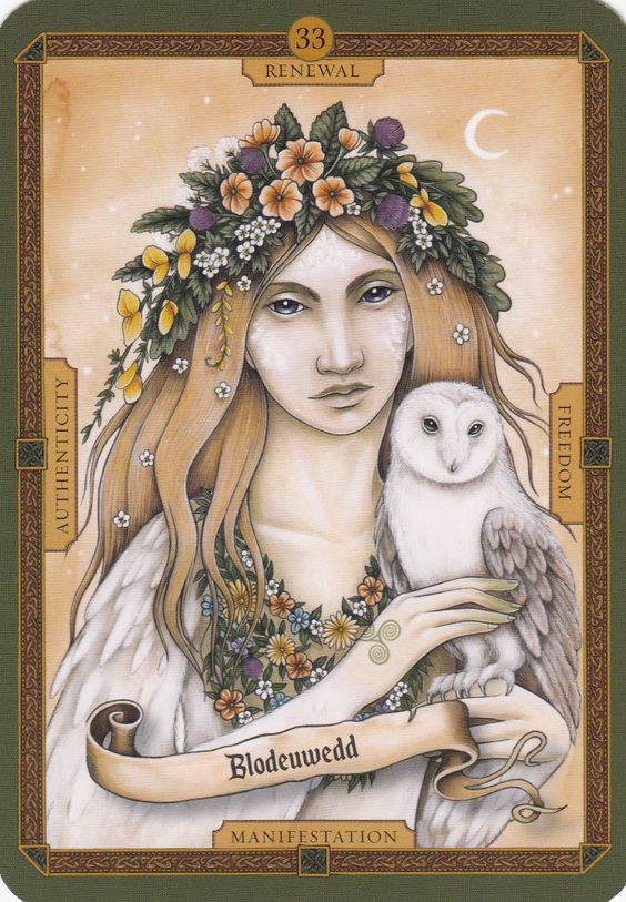 Note on Image: The image at the top of the post is the Blodeuwedd card from the Mists of Avalon Oracle deck.   I found the image on https://www.pinterest.com/pin/717198309422779509/