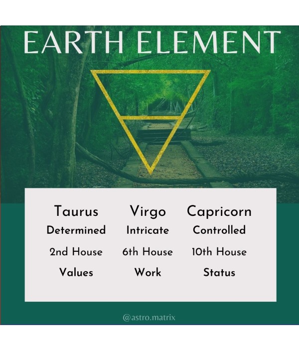 Note on Image: The image at the top of the post is of the Earth Element in Astrology. I found the image on https://astromatrix.org/Horoscopes/Elements/Earth.