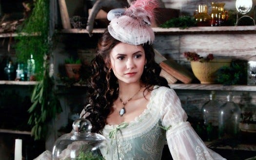 ~Katherine was born Katerina Petrova, but after she was forced to give up her daughter who was born out of wedlock, she moved to England. After turning into a vampire, she began to go by the name Katherine Pierce! This is how the Salvatores would know her later. She also would take on different looks to suit the time period in which she was currently living, helping to mask the fact that she was an immortal vampire. I think that this ability to adapt is how it was so easy for her to pretend to be Elena, eventually getting so good at this act that no one noticed when she took over Elena’s body when she “died” in the one-hundredth episode!