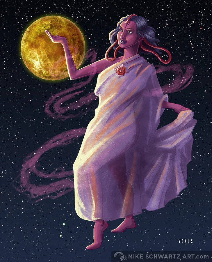Note on Image: The image at the top of the post is a lovely Venus artwork by Mike Schwartz. I found the art on http://www.mikeschwartzart.com/planets.
